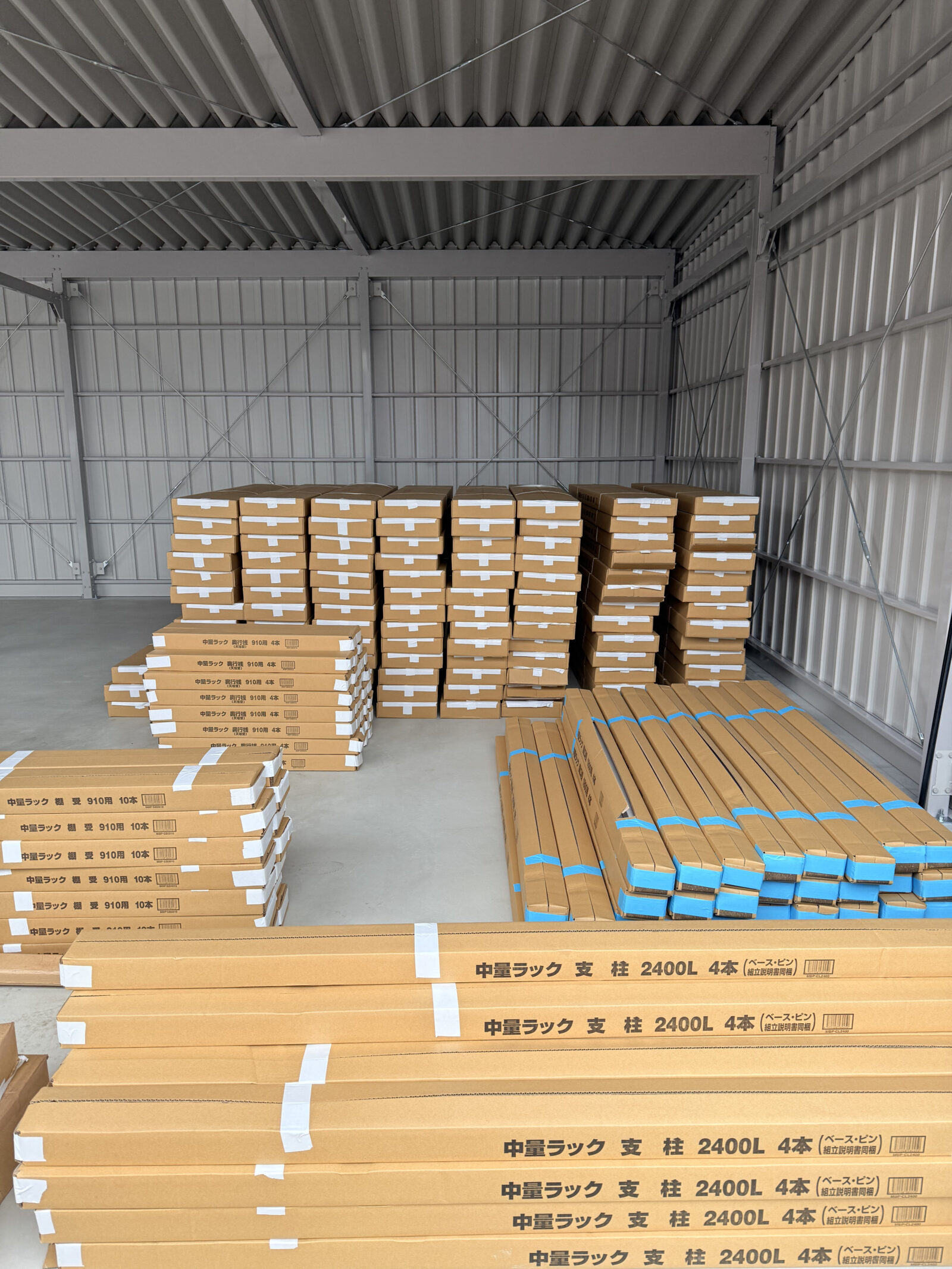 先日、福知山市の防災備蓄倉庫にて、とても大きなラックの組立・設置作業を行いました。