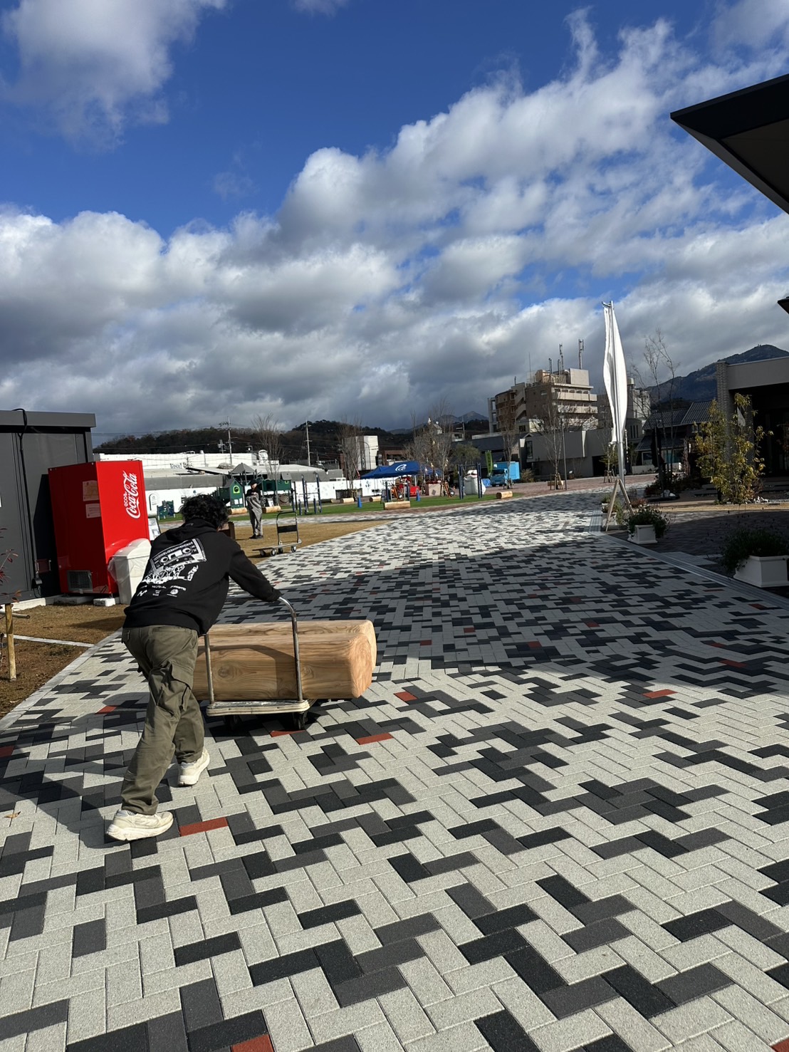 丸太ベンチ納品 | この土地の記憶を、磨いて残す。