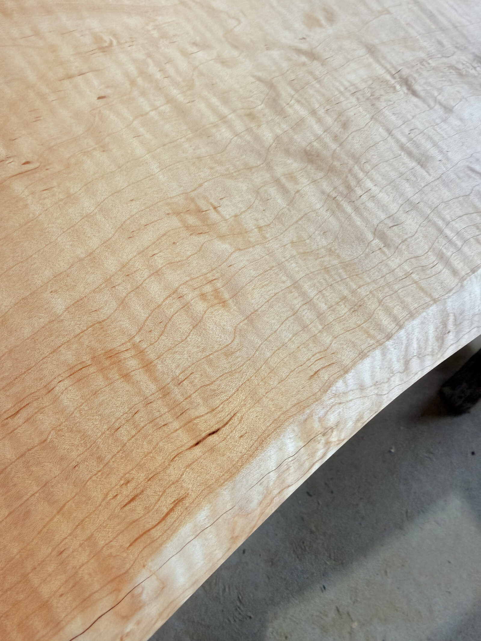 美容院にいらっしゃったお客様の目に常に入る3箇所の鏡前テーブルに使用する一枚板の磨きを行いました。
