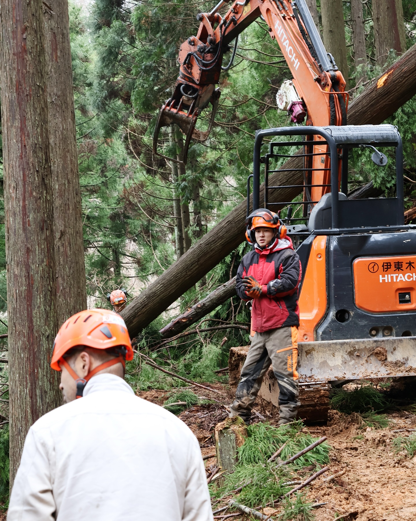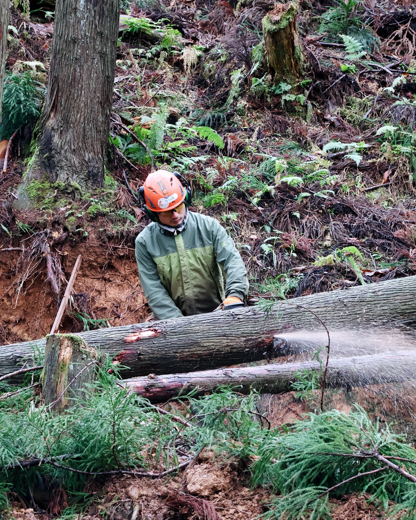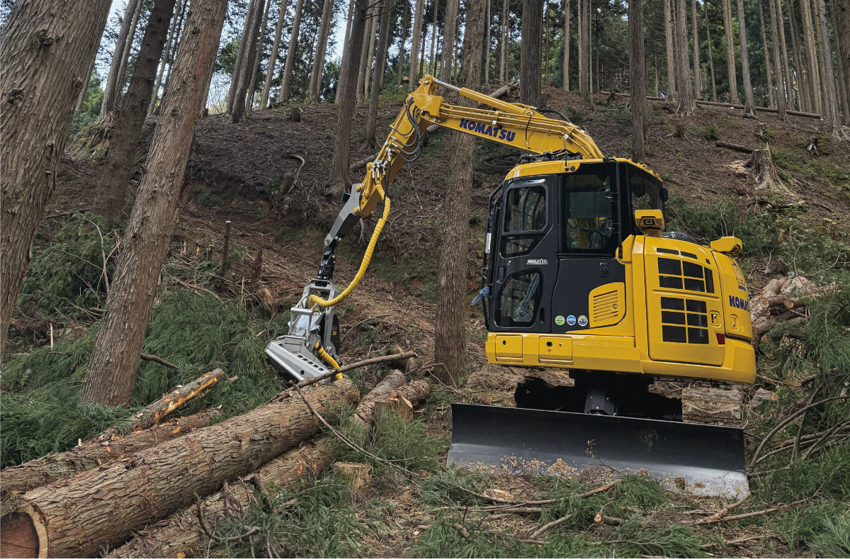 以前に開設していた森林作業道が今回も活かせるため、段取りよく進めることができます。