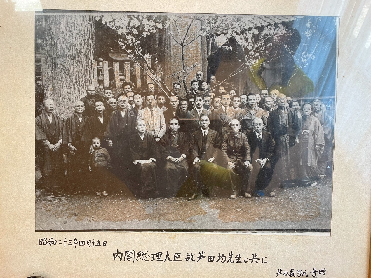 当時、芦田均先生が総理就任後に帰郷されたときには、神社に二対あったご神木の大モミの前で、財産区メンバーと集合写真を撮影されたそうです。